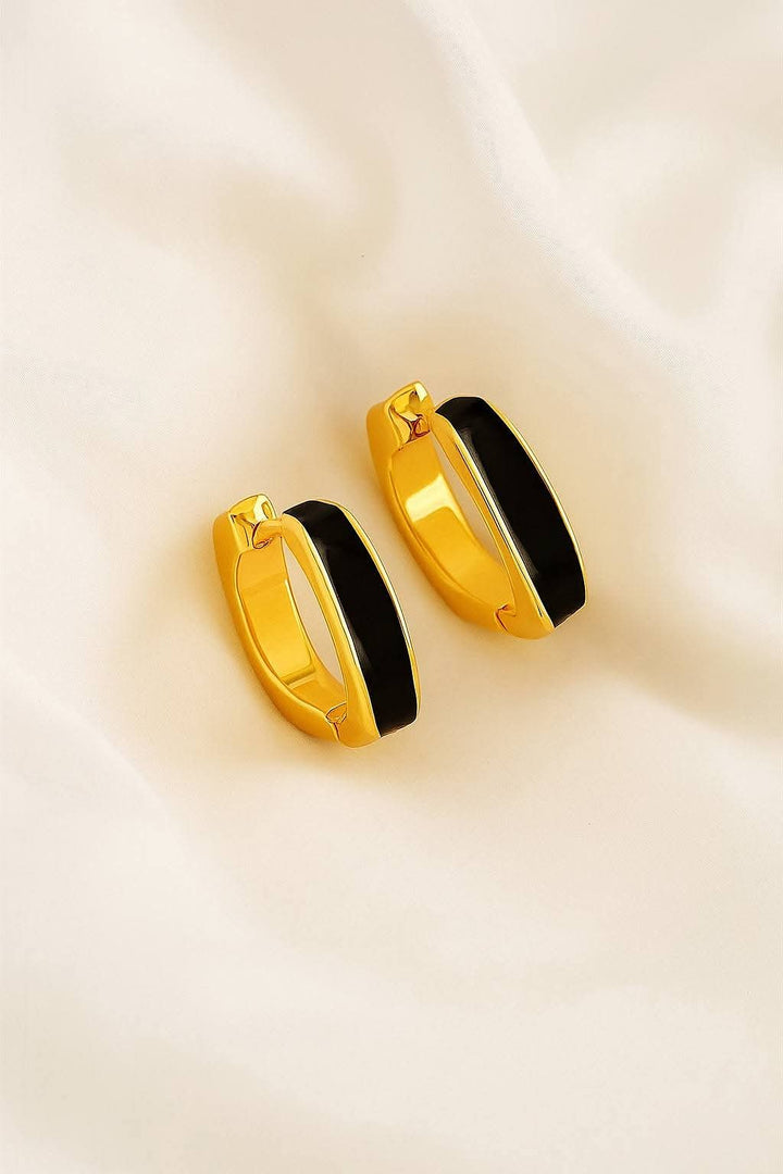 Make a striking statement with our Bold Gold & Black Enamel Huggie Hoop Earrings, designed for modern women who appreciate clean lines, strong contrast, and timeless elegance. These huggie hoops feature a sleek black enamel inlay framed inside a bold 18K gold-plated rounded silhouette — delivering elegance with just the right amount of edge.