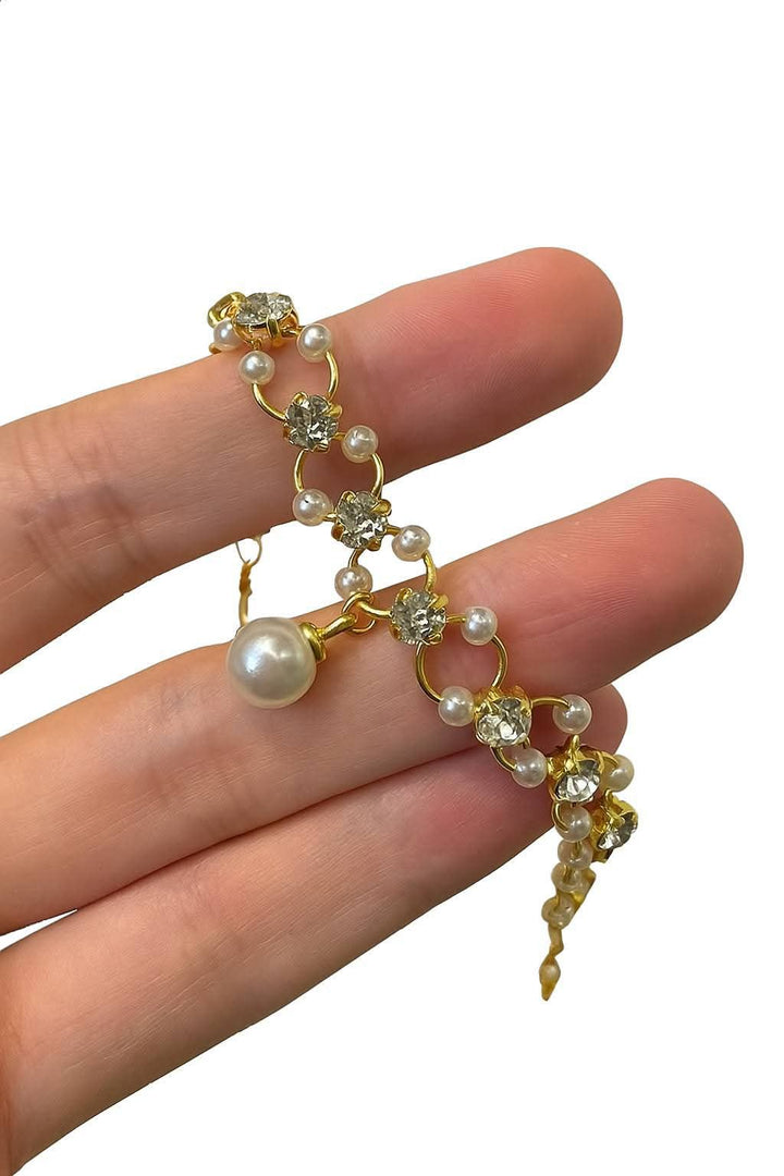 Delicate meets dazzling in our Gold Crystal & Pearl Charm Bracelet, a timeless piece designed to highlight your elegance with every flick of the wrist. This graceful bracelet features a sophisticated chain of gold-tone open loops, encrusted with sparkling brilliant-cut crystals and accented with petite faux pearls, perfectly complemented by a larger central charm pearl that adds a touch of drama and grace.
