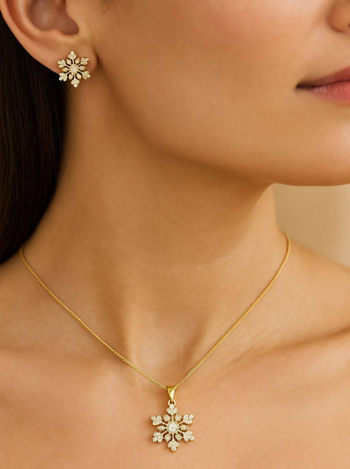 Snowflake Crystal Jewelry Set – Gold Plated Necklace & Earrings