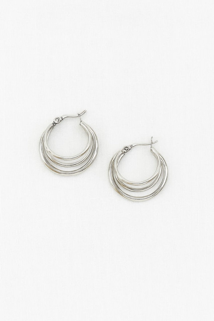 Add a touch of modern elegance to your everyday style with our Triple Layered Silver Hoop Earrings. Beautifully crafted with three overlapping arcs, these hoops deliver a bold and dimensional look while maintaining a lightweight, comfortable feel.